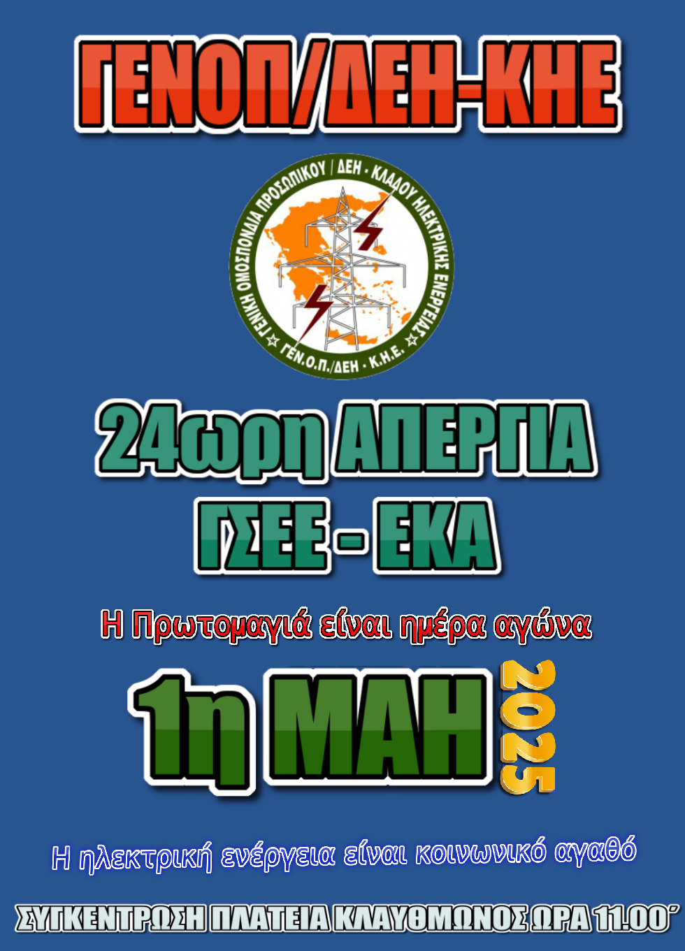 Ανακοίνωση ΓΕΝΟΠ-ΔΕΗ για την Εργατική Πρωτομαγιά 2025