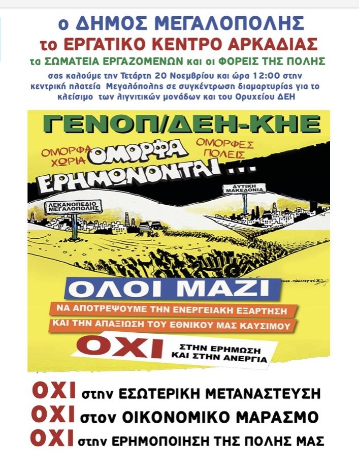 Αρκαδία: Στις 12.00 το μεσημέρι στην Πλατεία Μεγαλόπολης από κοινού με Εργατικό Κέντρο Αρκαδίας.