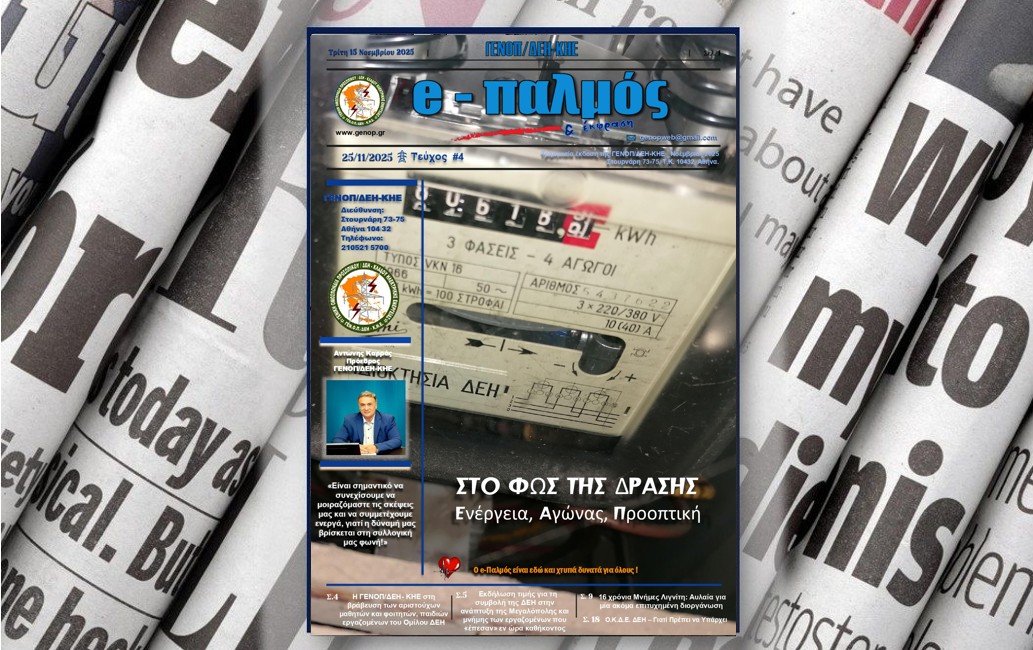 Κυκλοφόρησε το 4ο τεύχος του e-Παλμού της ΓΕΝΟΠ/ΔΕΗ!